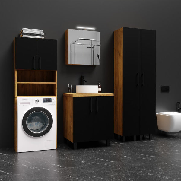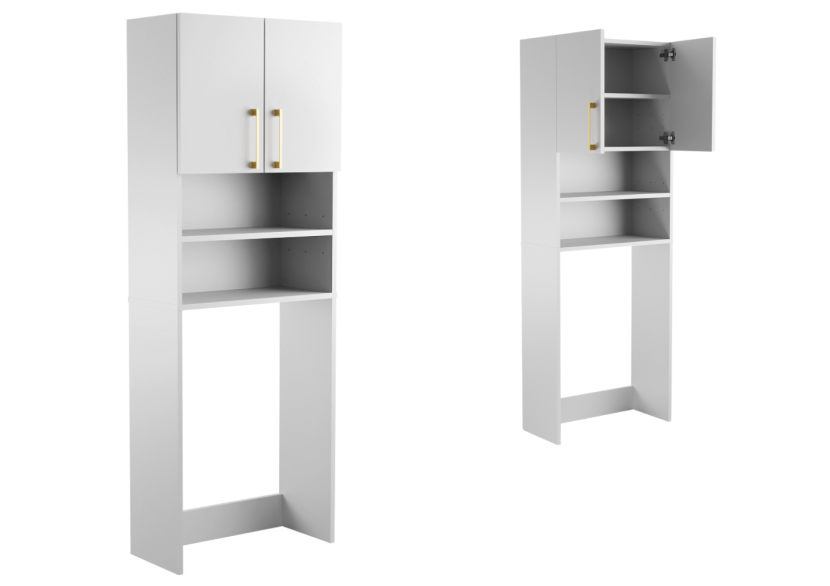 ✅Platz für eine Waschmaschine: Der untere Teil des Regals ist so konzipiert , dass er als Nische für eine Waschmaschine genutzt werden kann , was eine ideale Lösung ist , um Platz im Badezimmer zu sparen.