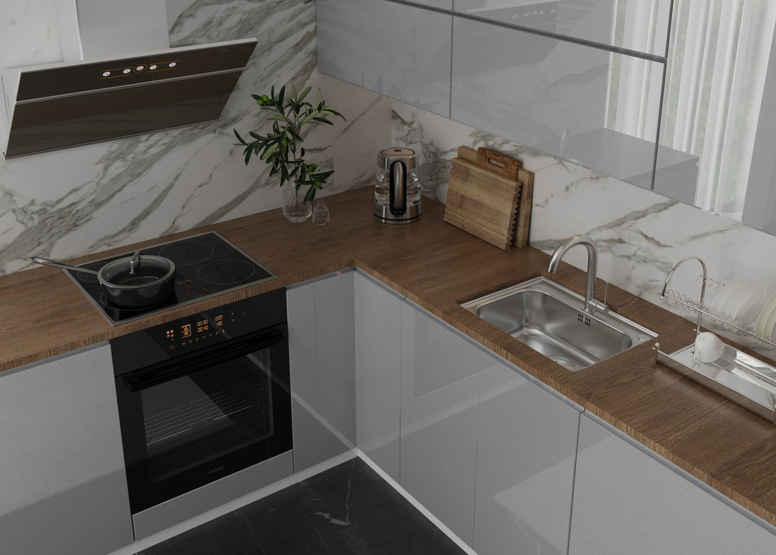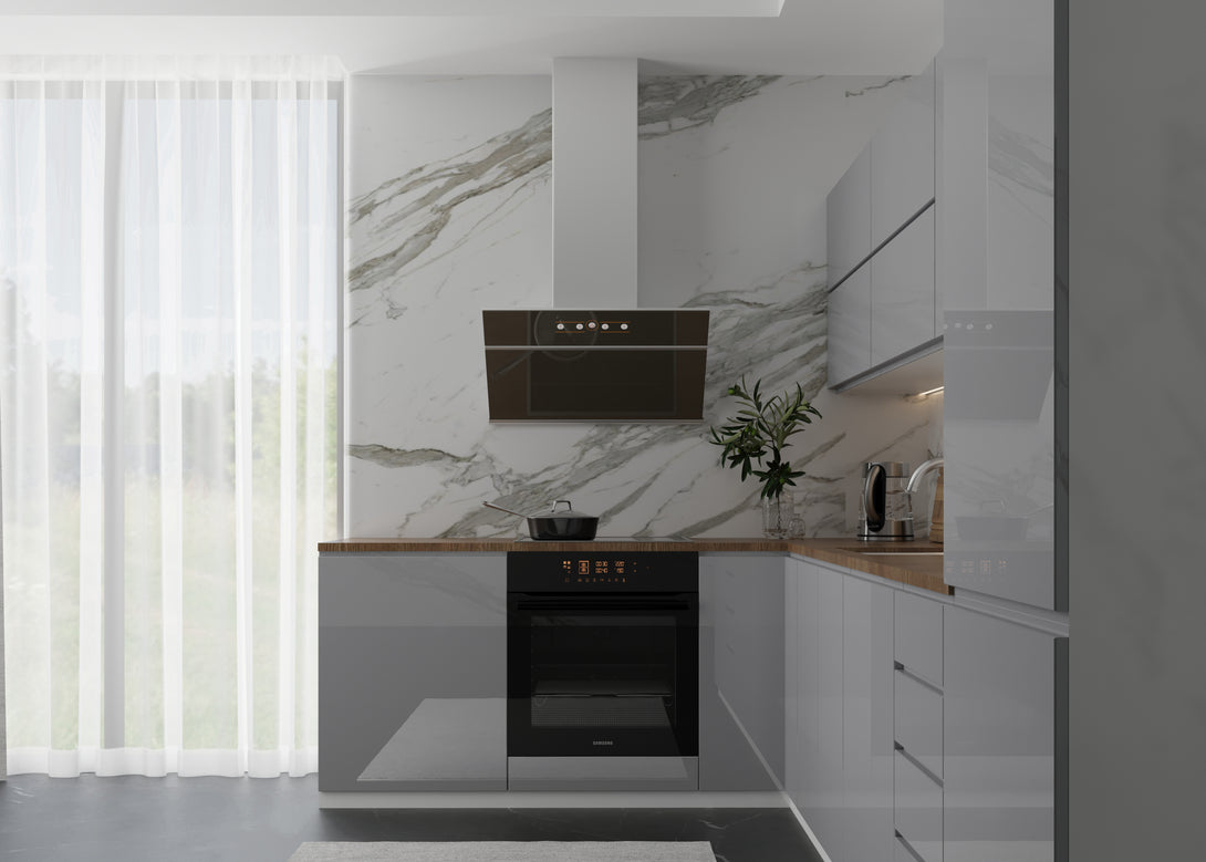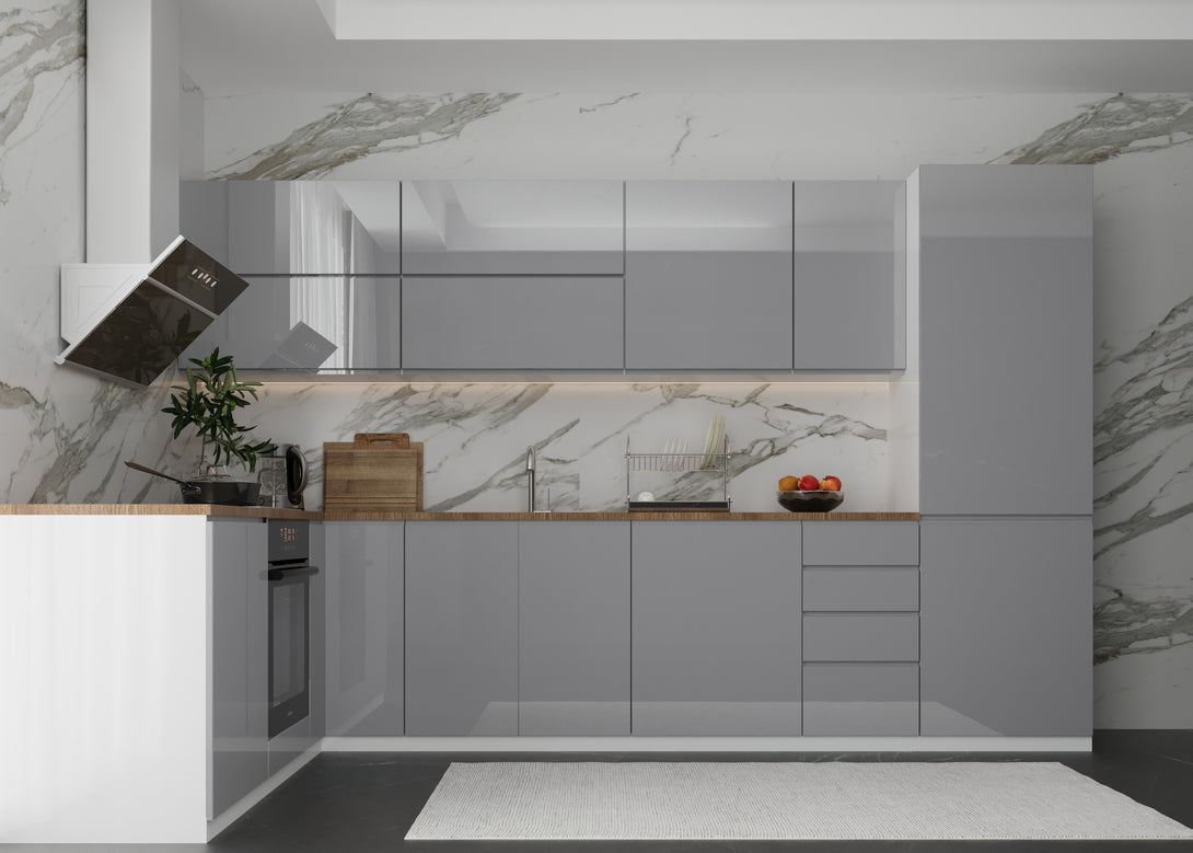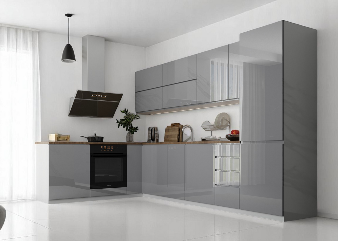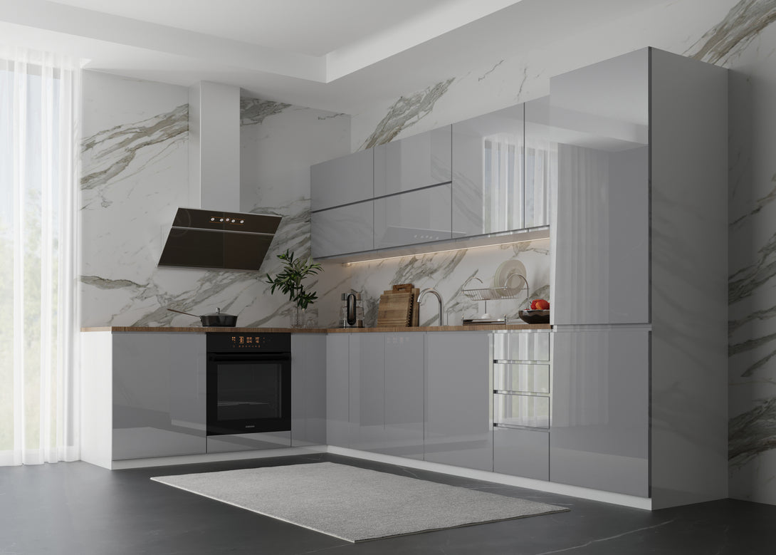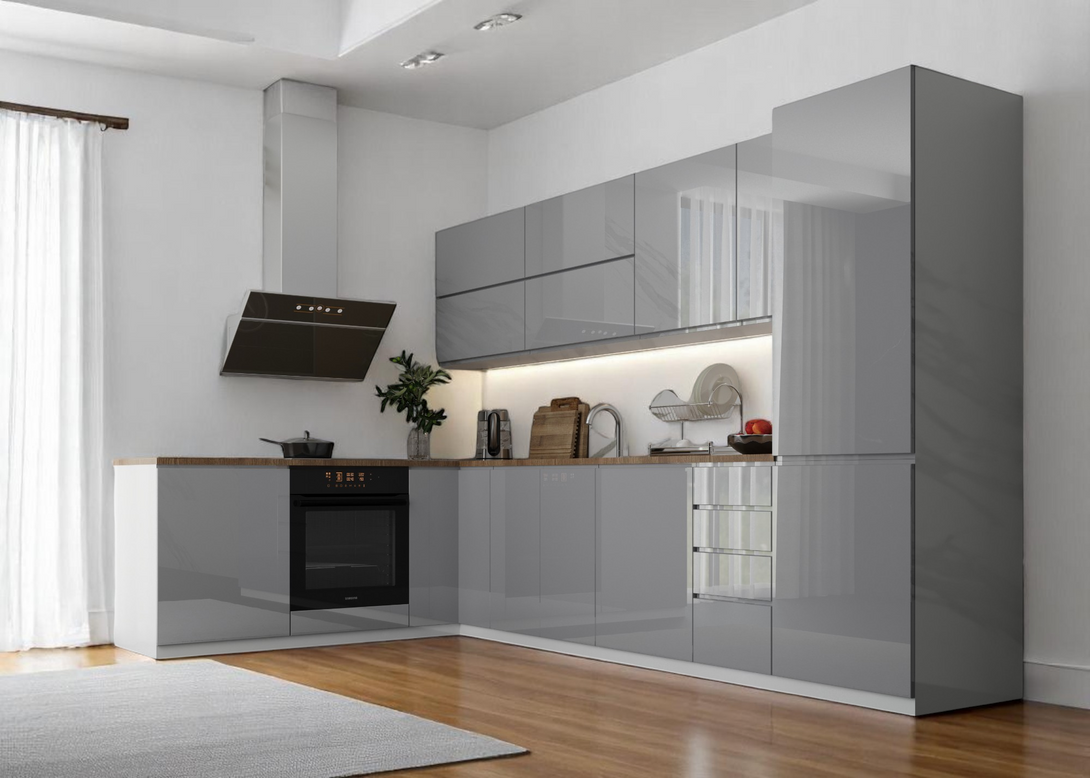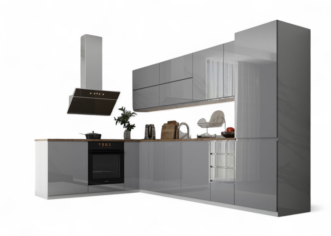 Küchenmöbel-Set Aspen 330 × 210 cm – Hochglanz Grau