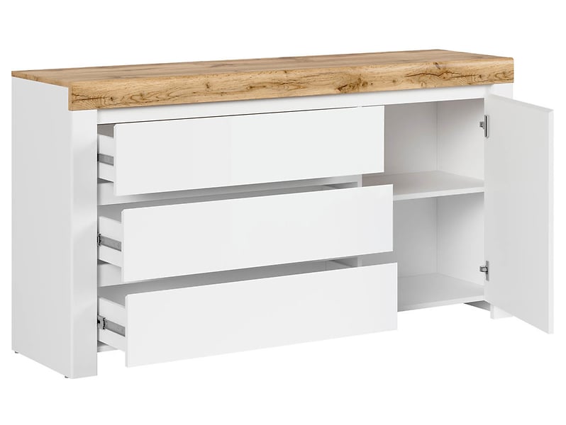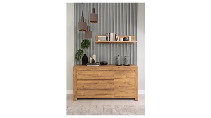 Die Holten Kommode ist eine perfekte Kombination aus praktischer Aufbewahrung und ästhetischem Design. Mit drei geräumigen Schubladen und einem großen Schrank bietet sie reichlich Platz für Ihre persönlichen Dinge. Der innen individuell gestaltbare Schrank sorgt für maximale Flexibilität beim Verstauen.