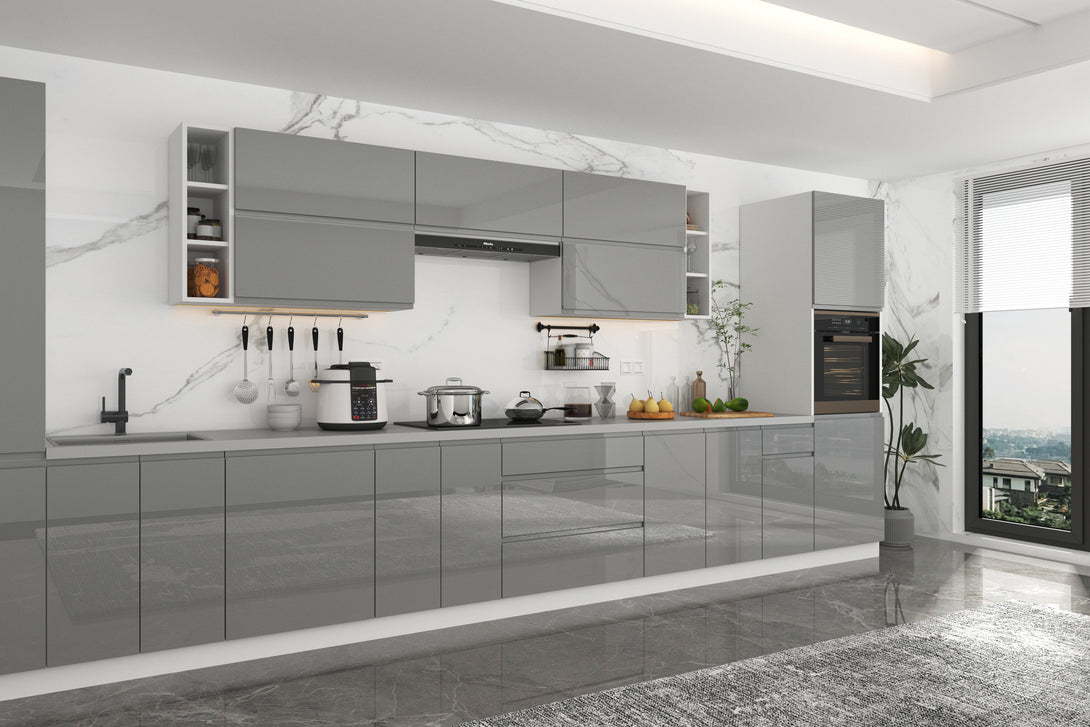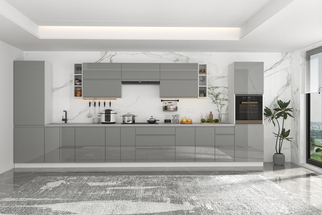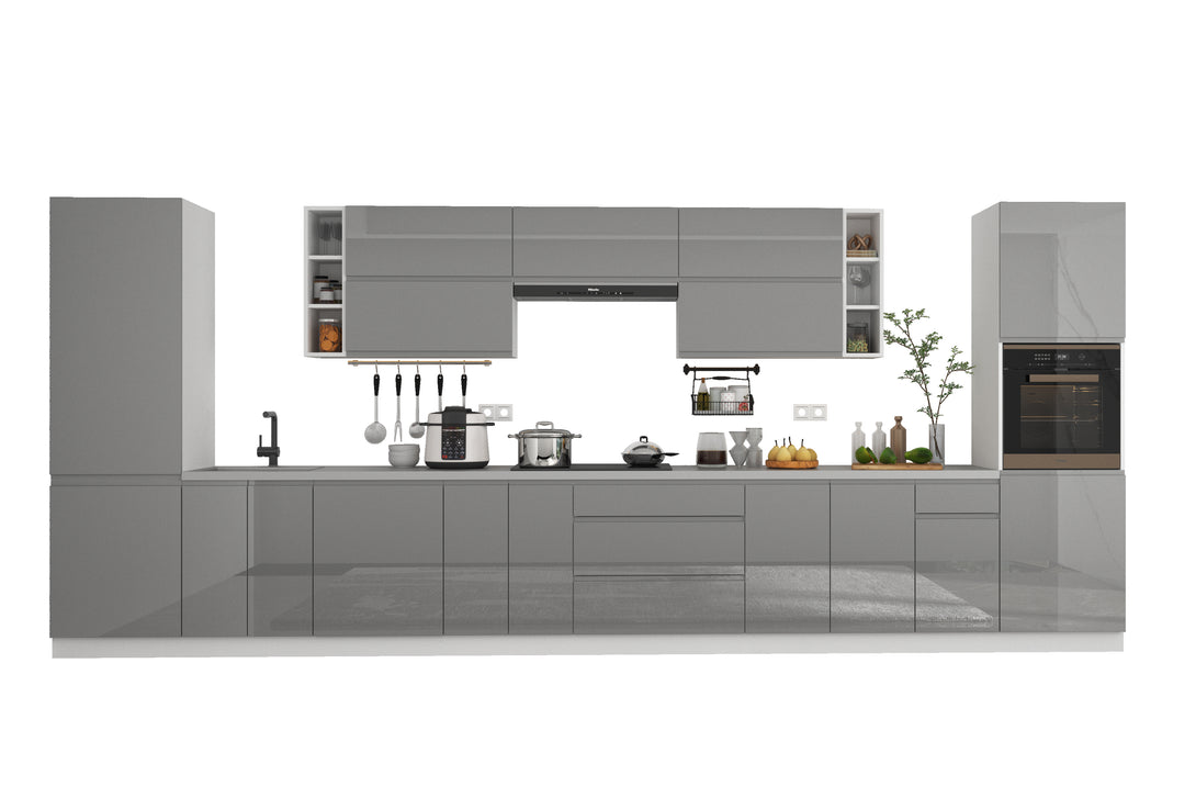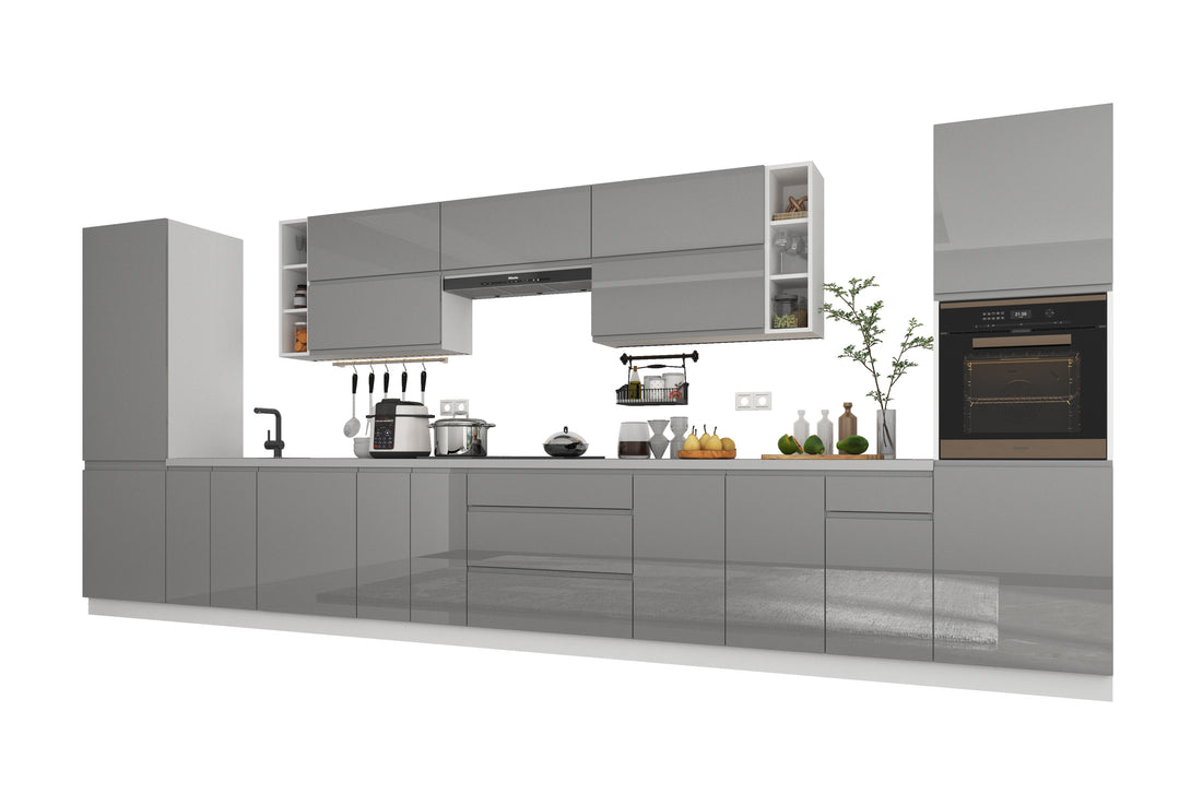 Küchenmöbel-Set Aspen 500 cm – Grau Hochglanz