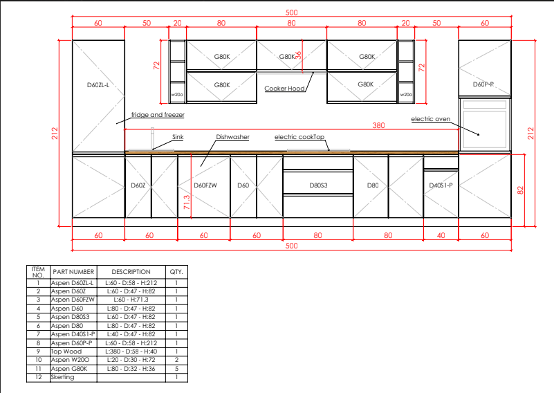 | 1 | Aspen D60ZL - Kühlumbauschrank | 60 x 58 x 212 cm | 1 |