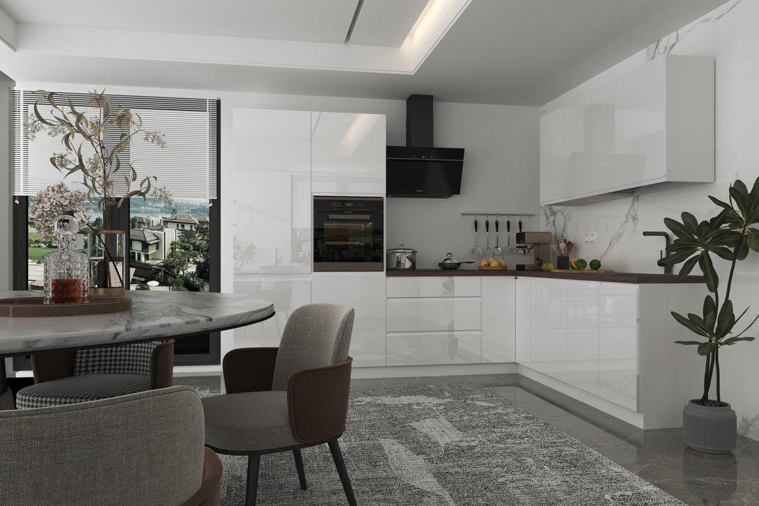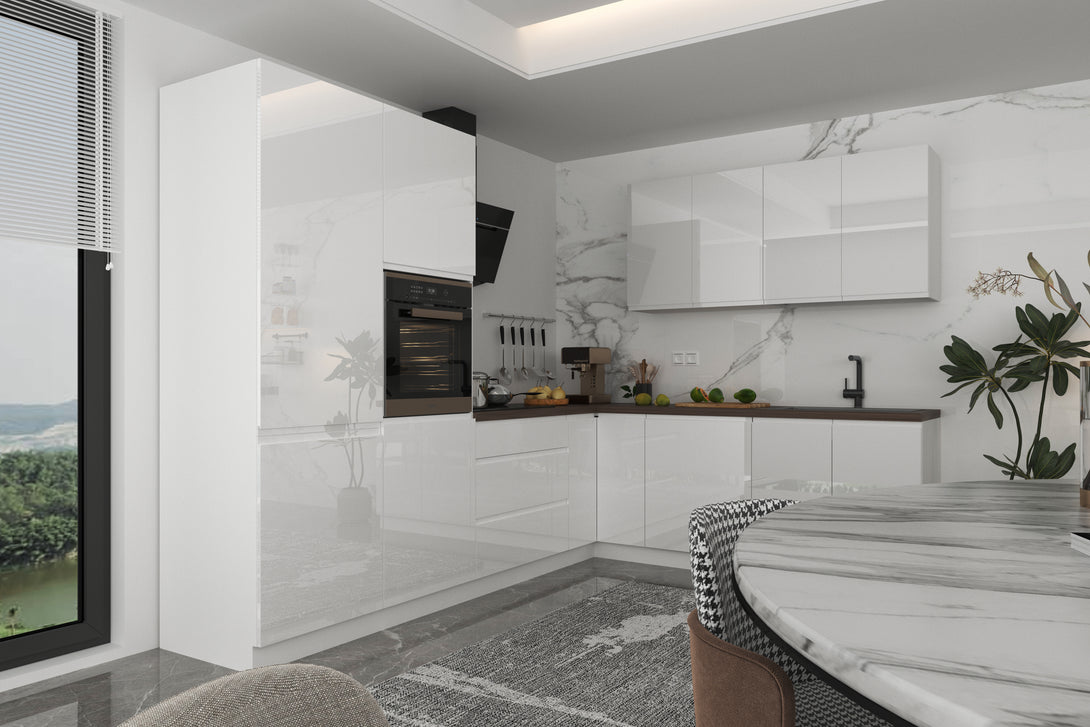Winkelküche - Aspen KA3-M290 - Weiß / Hochglanz