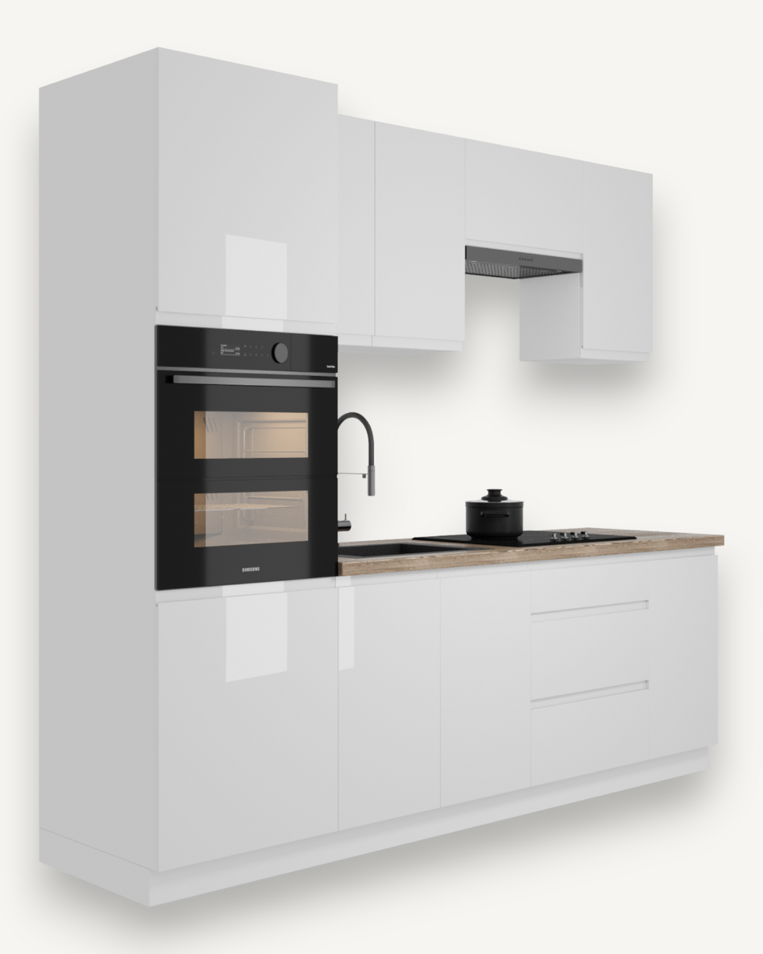 Küchenzeile -Aspen K101-M240 - Weiß / Hochglanz