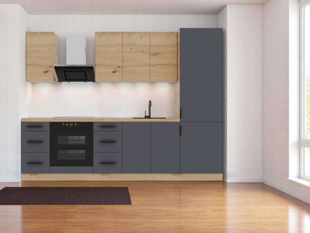 Küchenmöbel-Set Langen 280 cm – Grau / Artisan Eiche