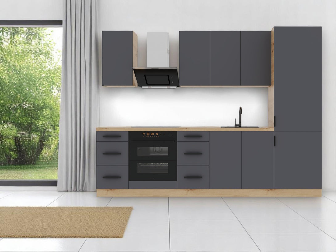Küchenmöbel-Set Langen 280 cm – Grau / Matt