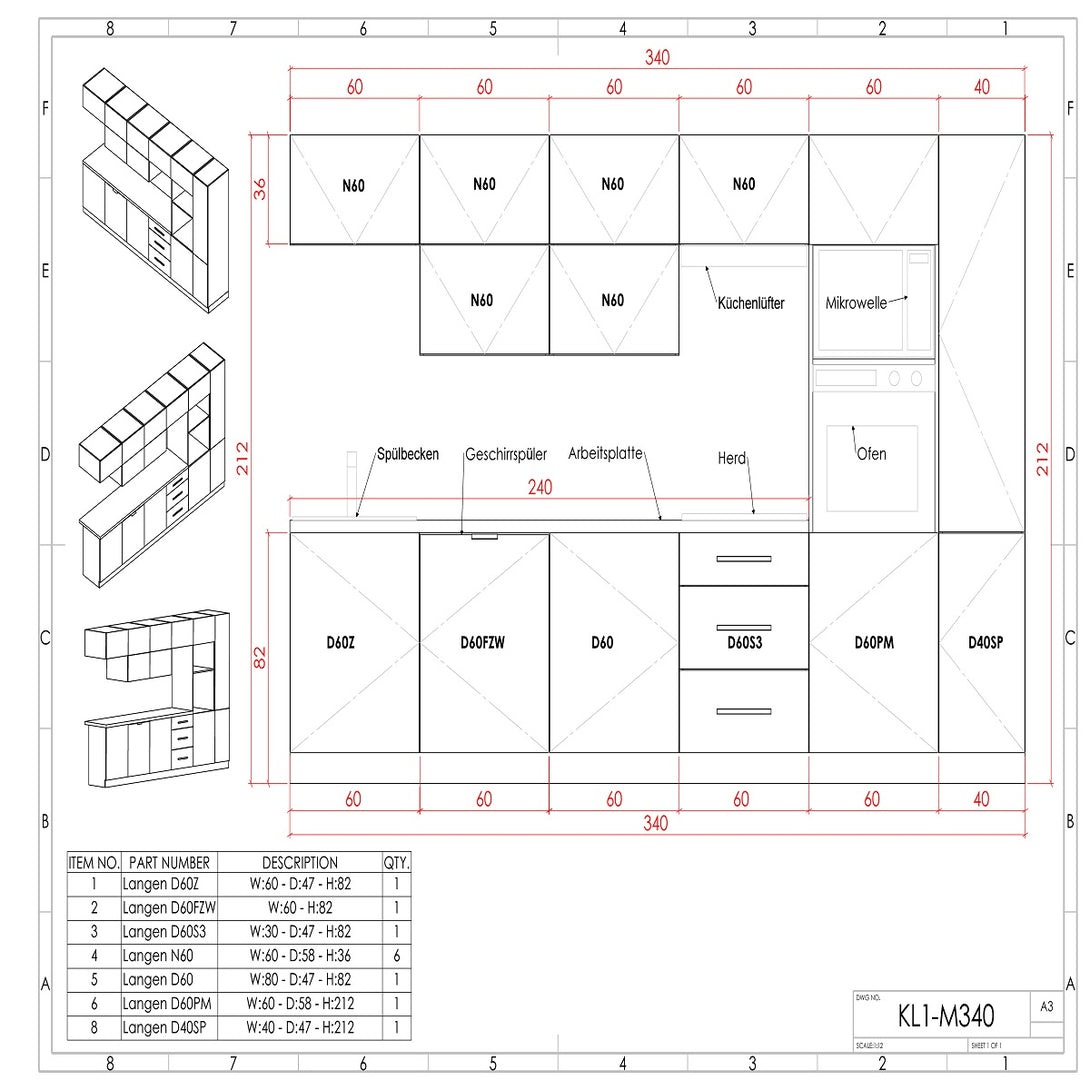| 4 | Langen D60S3 - Unterschrank mit 3 Schubladen | 60 x 47 x 82 cm | 1 |