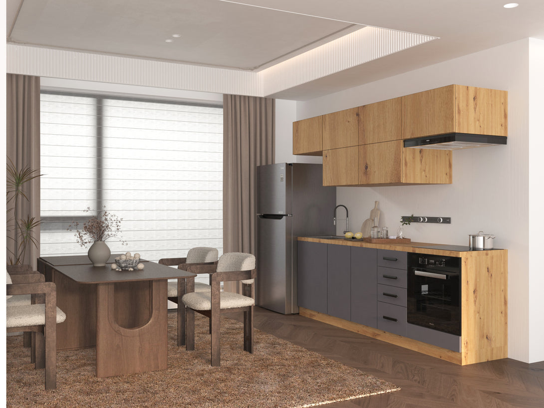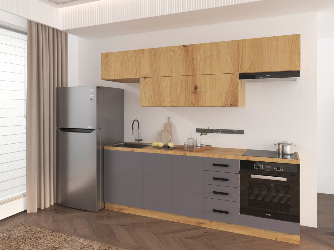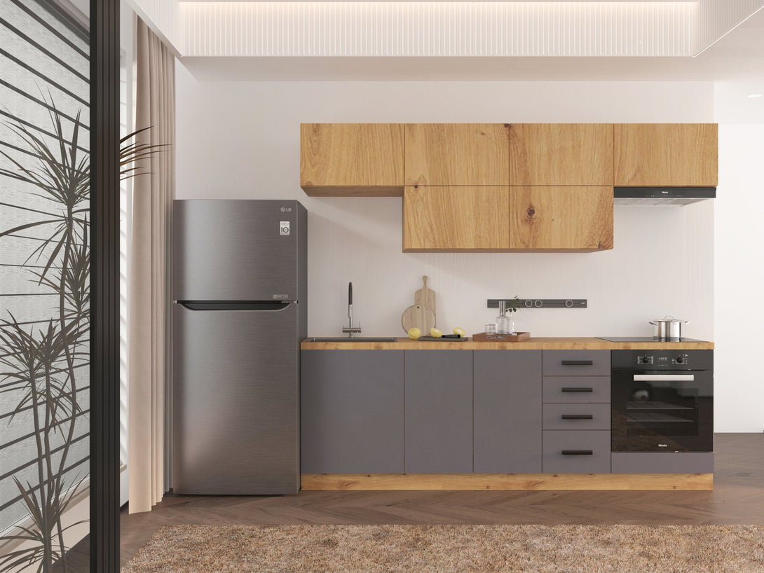 Küchenzeile - Langen KL2-M240 - Grau/Artisan Eiche