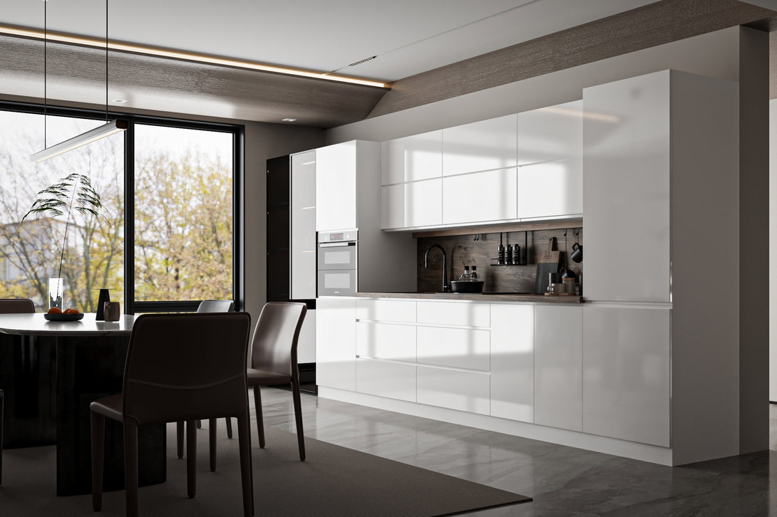 Küchenmöbel-Set Aspen 360 cm – Hochglanz Weiß