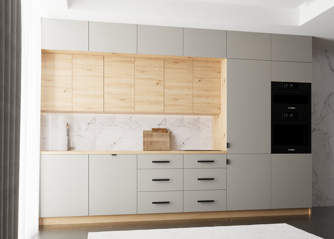 Küchenmöbel-Set Langen 360 cm – Matt Beige / Artisan Eiche