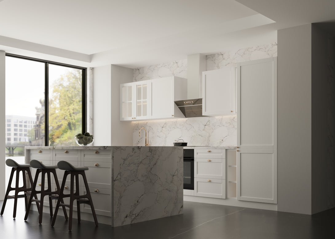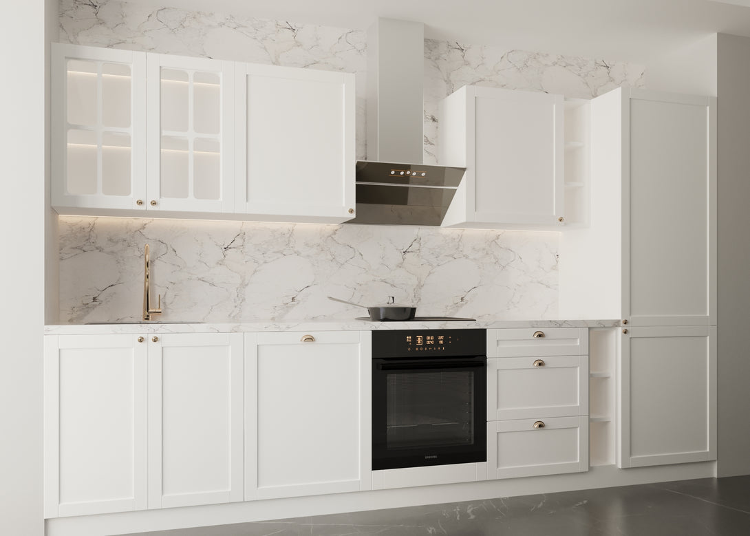 Küchenmöbel-Set Linea 340 cm – Matt Weiß