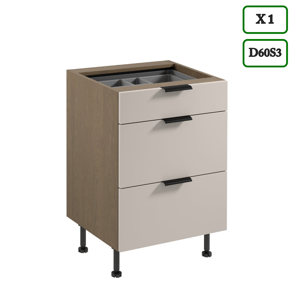 Küchenunterschrank Sorento D60S3 AX mit Besteckeinsatz