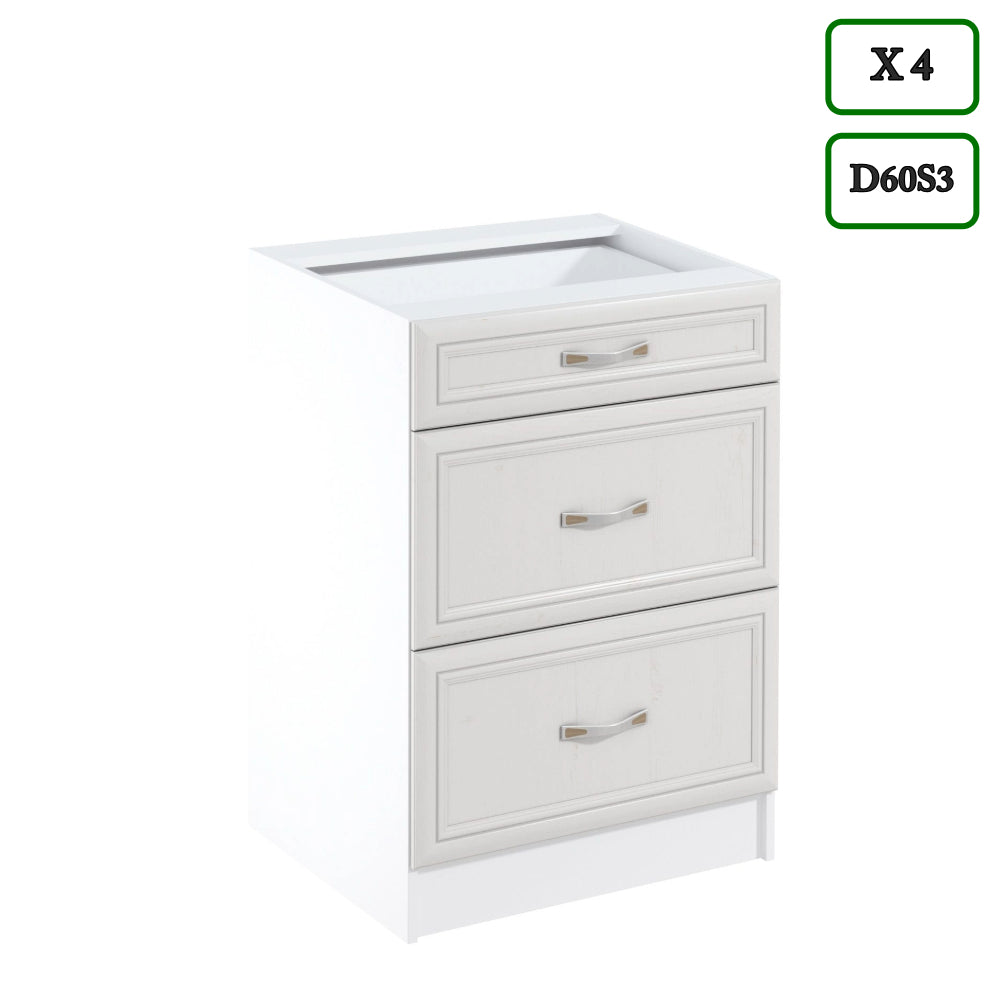 Sycylia Weiß D60S3 – Unterschrank mit drei Schubladen