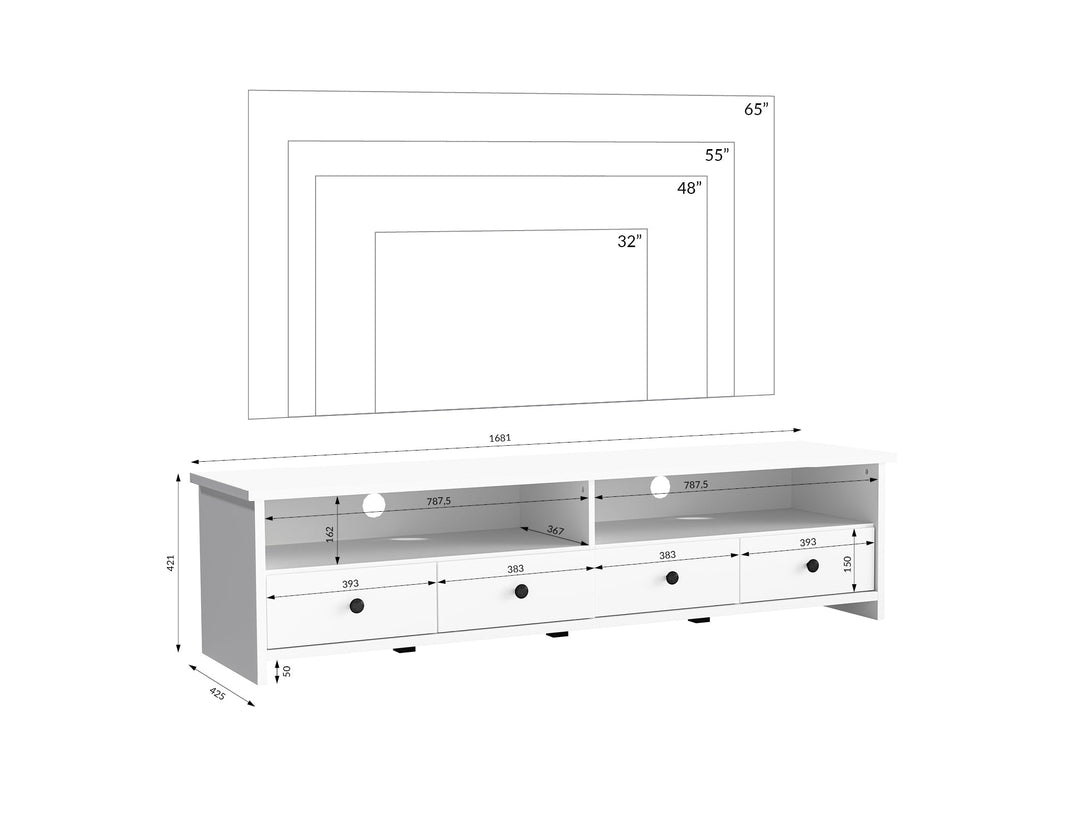 Das Möbelstück ist ein praktischer Schubladenschrank mit vier Schubladen, ideal für die Aufbewahrung von verschiedenen Gegenständen.