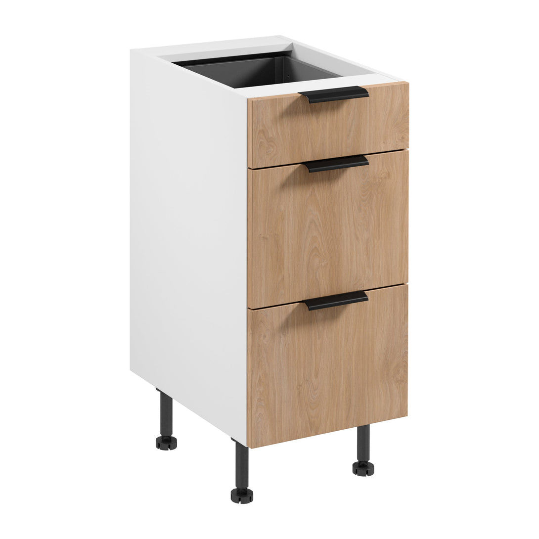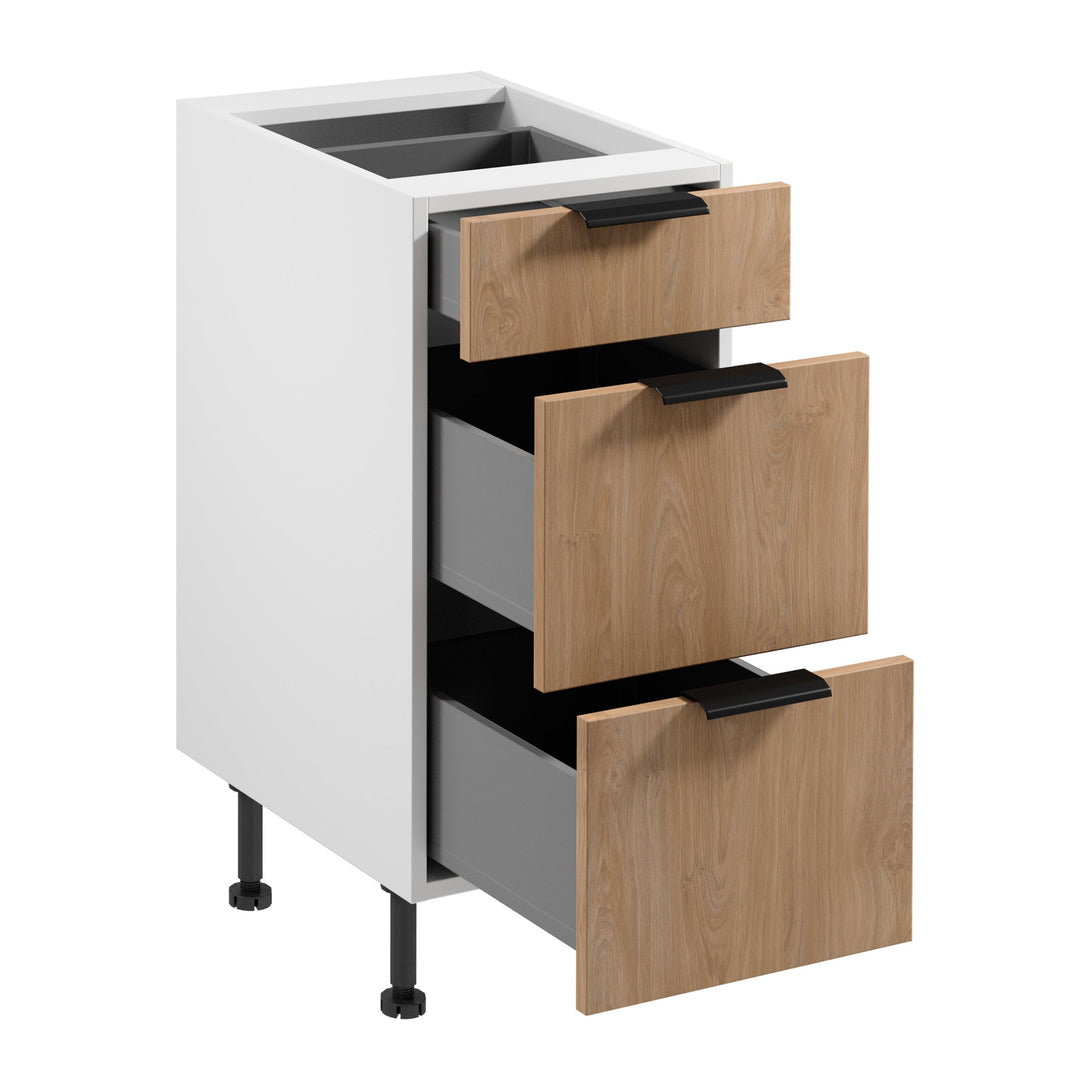 Unterschrank D40S3 AX - Sorento Weiß Sonoma Eiche - Praktisches Design mit 3 Schubladen.