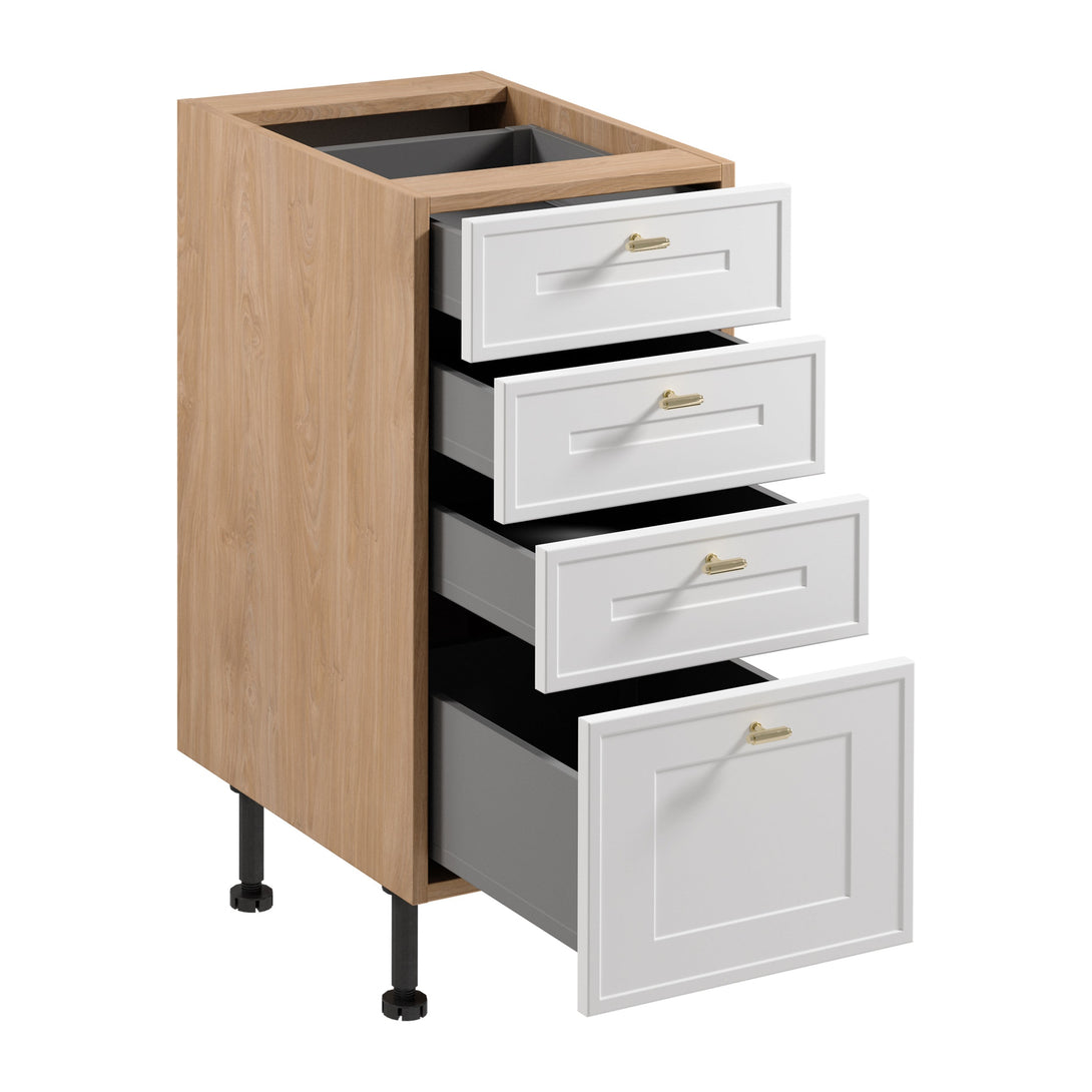 Unterschrank D40S4 AX - Sorento Sonoma Eiche Weiß - Markantes Design mit 4 Schubladen für mehr Organisation.