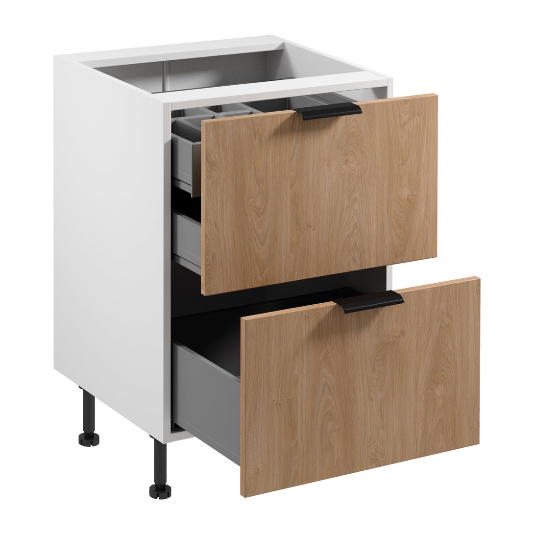 Unterschrank D60S2+1 AX - Sorento Weiß Sonoma Eiche - Mit zwei geräumigen Schubladen zur Aufbewahrung.