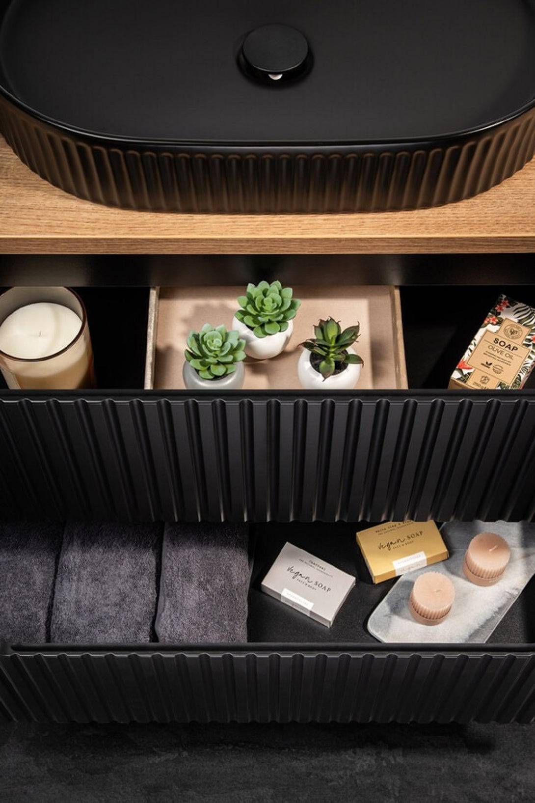 Waschbeckenunterschrank 80, 60, 50 cm – Nova Black N - Eleganz in Schwarz & Coast Evoke Eiche