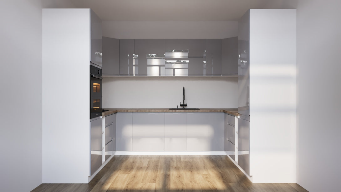 Küchenmöbel-Set Aspen 780 cm – Grau / Hochglanz