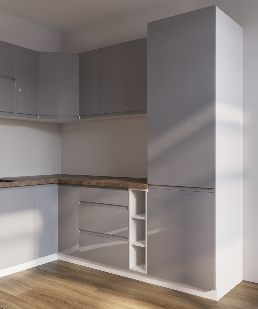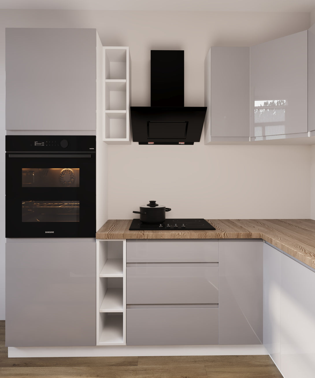Winkelküche -Aspen K102-M780 - Grau / Hochglanz