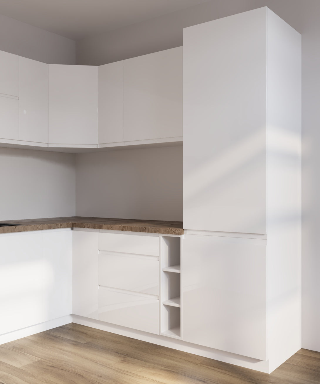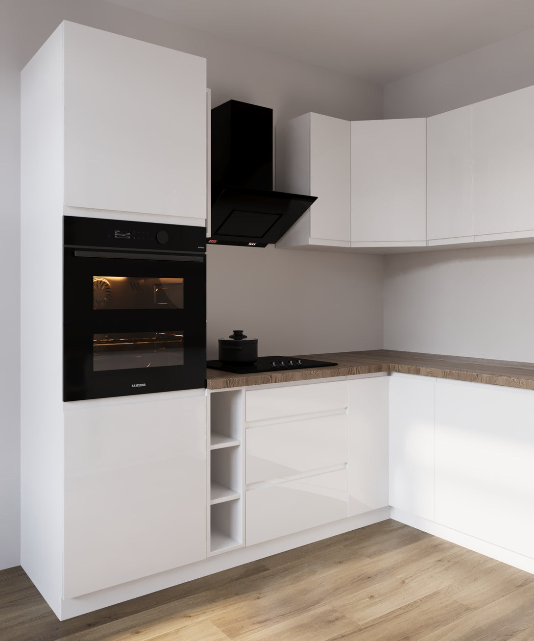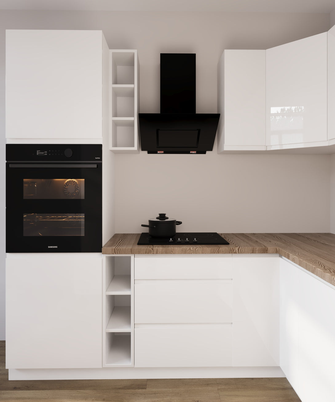 Winkelküche -Aspen K102-M780 - Weiß / Hochglanz