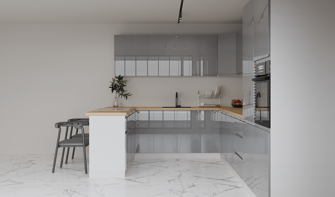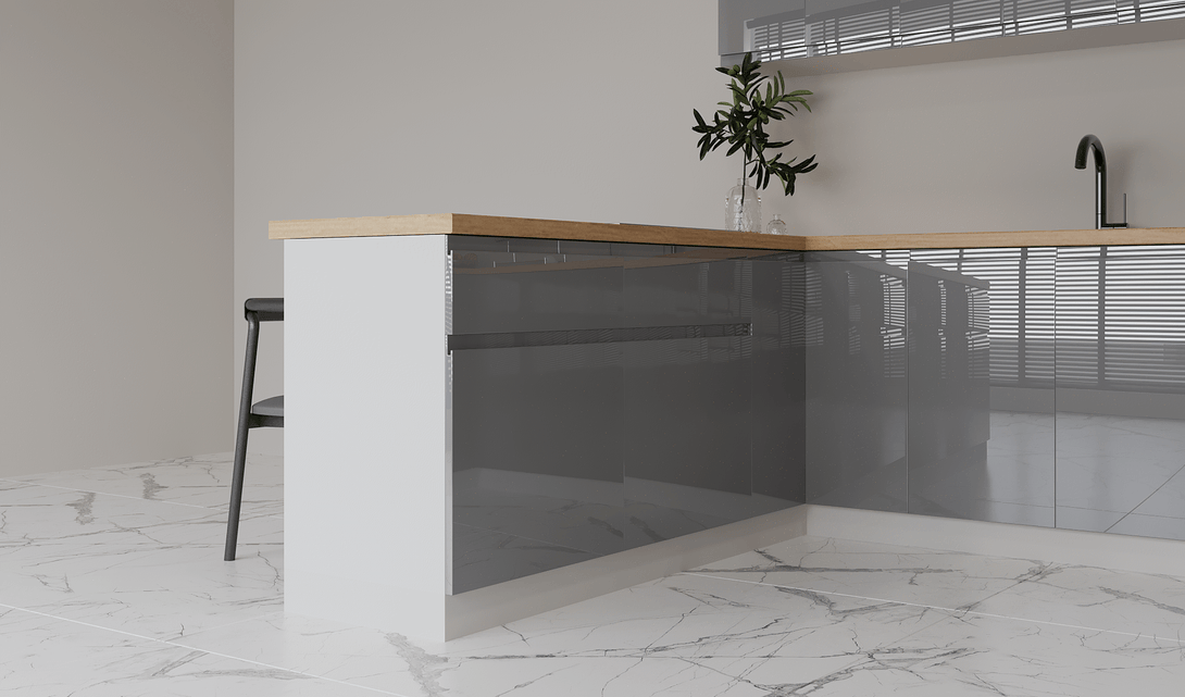 Winkelküche -Aspen K107-M860 - Grau / Hochglanz