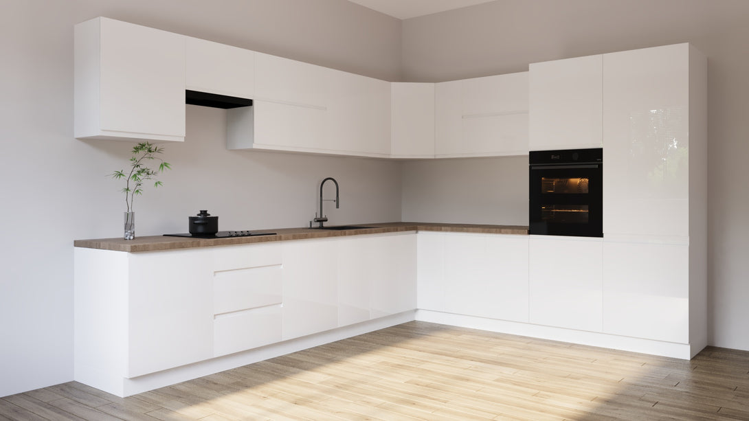 Winkelküche -Aspen K92-M350 - Weiß / Hochglanz
