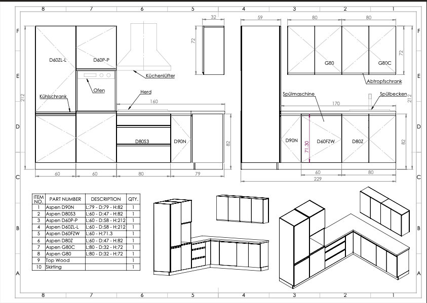 | 8 | Aspen G80C - Hängeschrank mit Geschirrtrockner | 80 x 32 x 36 cm | 1 |