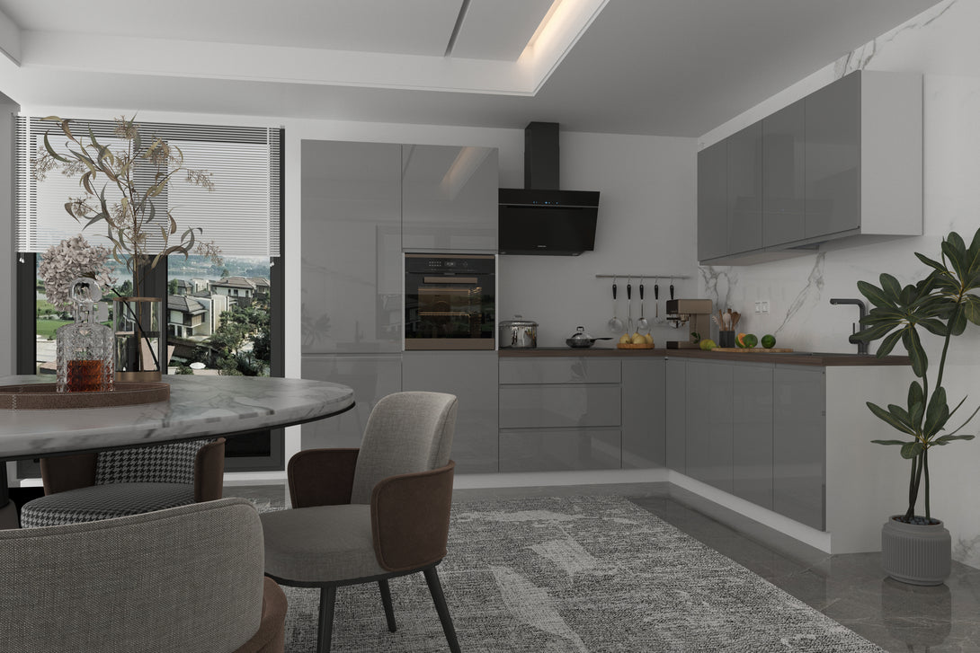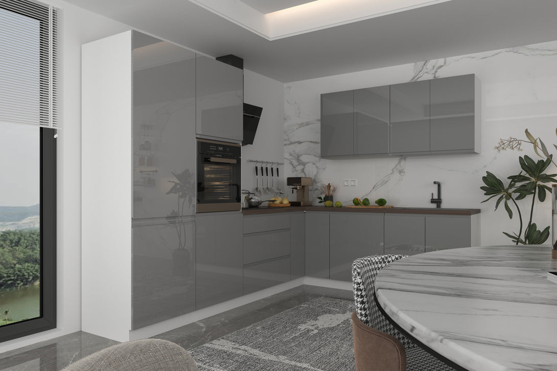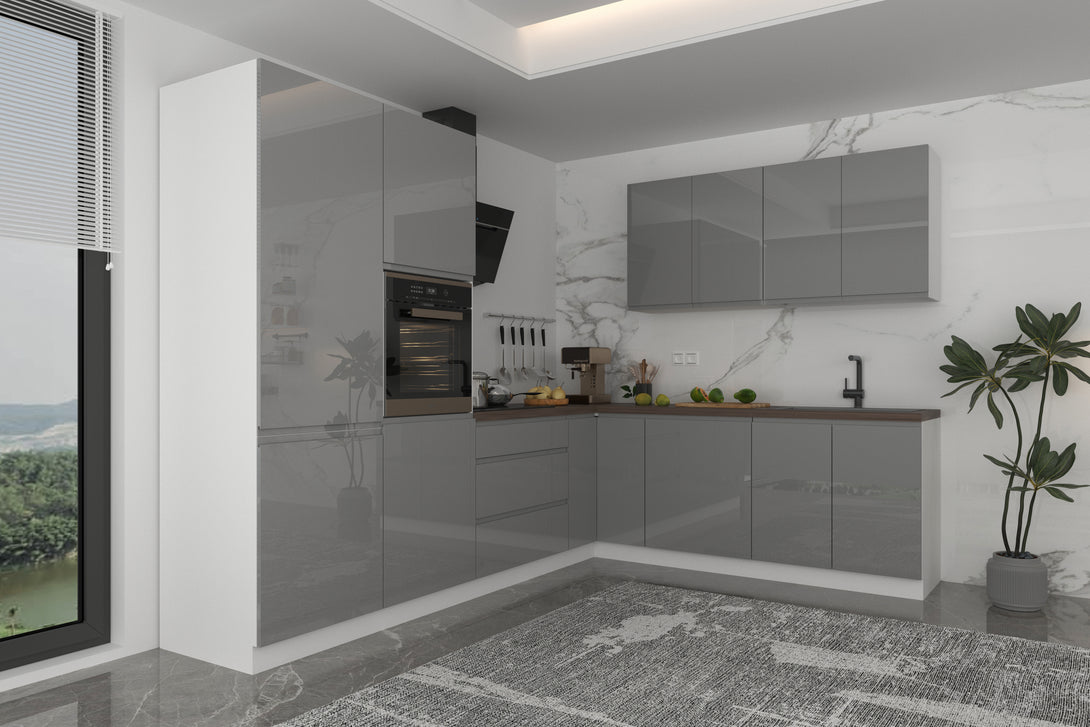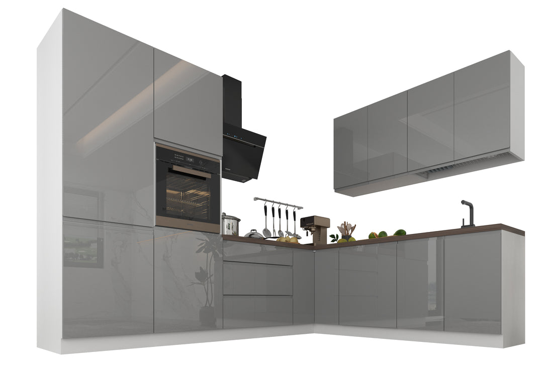 Küchenmöbel-Set Aspen290 x 230 cm – Grau Hochglanz