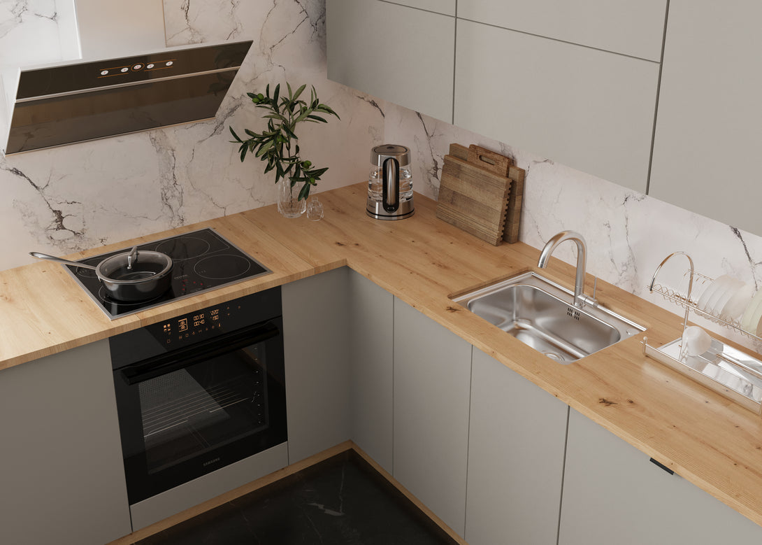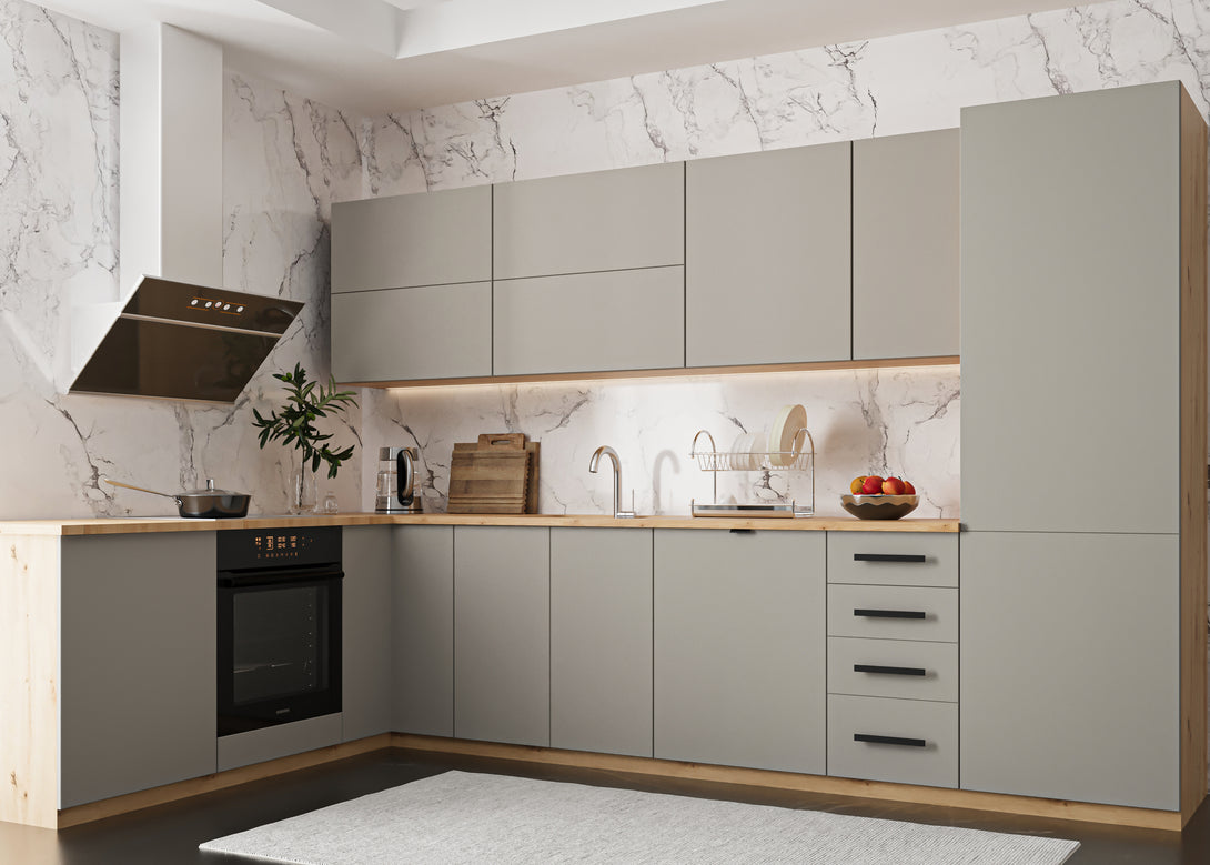 Küchenmöbel-Set Langen 330 × 210 cm – Matt Beige