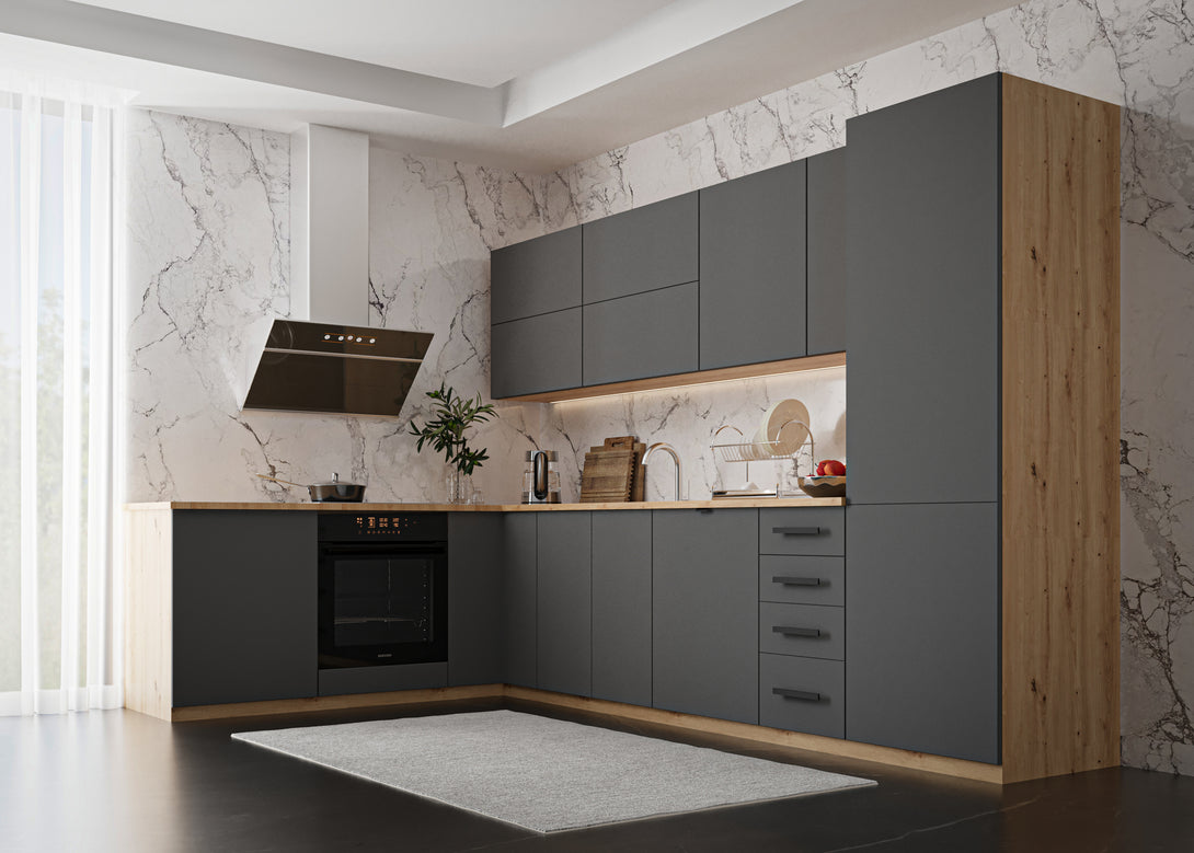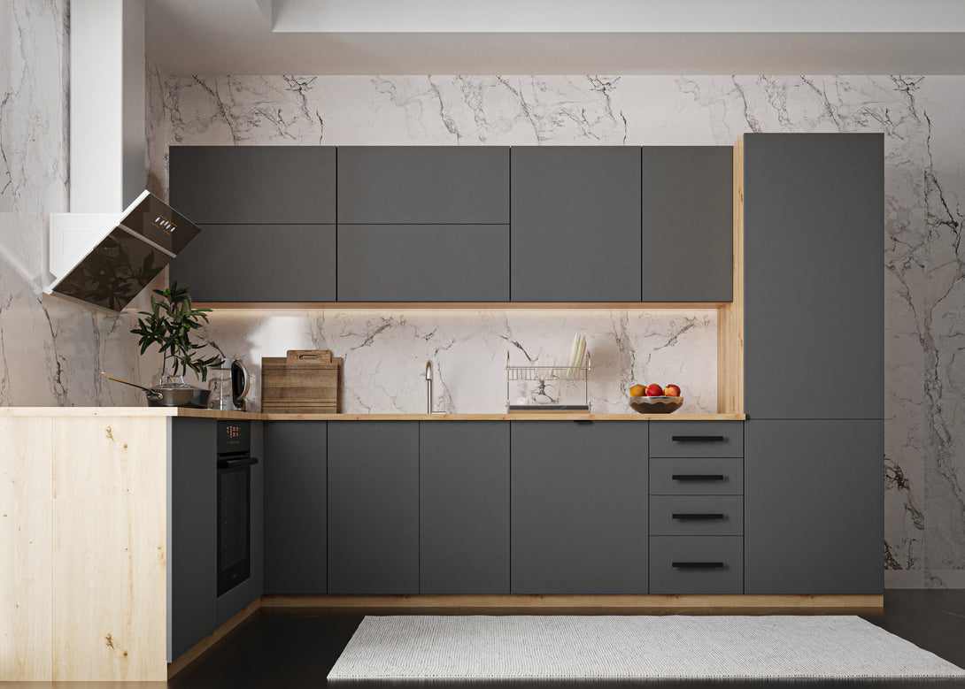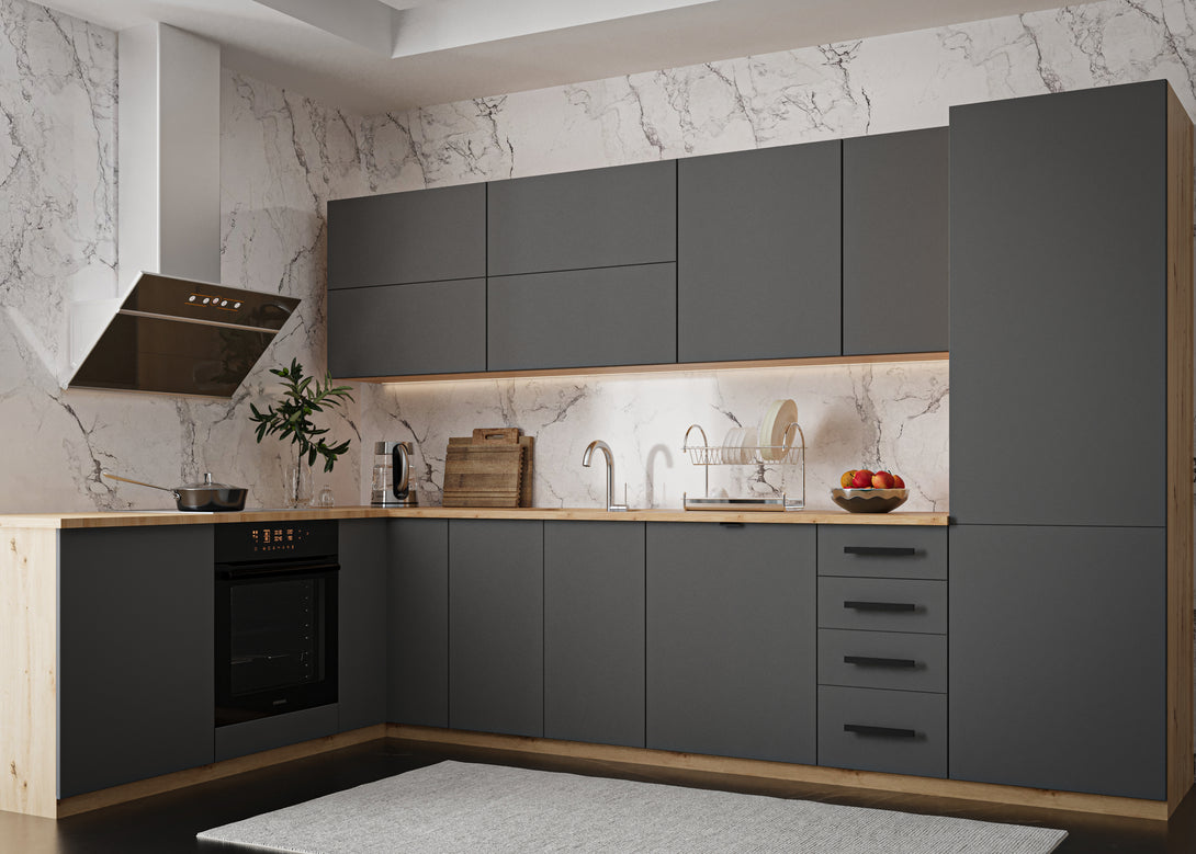 Küchenmöbel-Set Langen 330 × 210 cm – Matt Grau