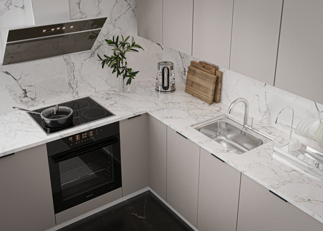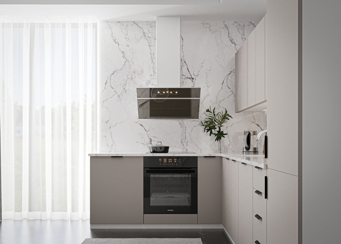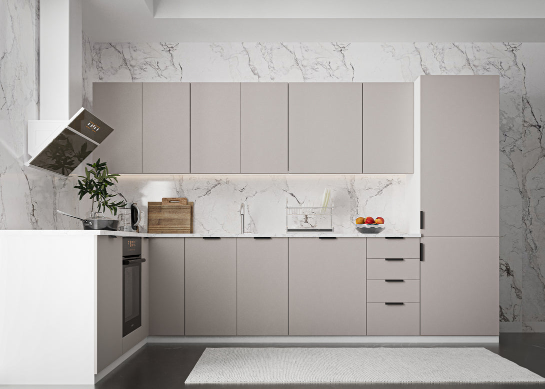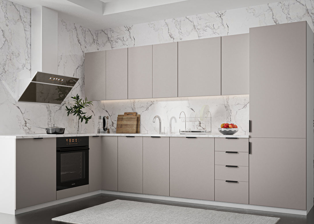 Küchenmöbel-Set Sorento Weiß Beige 330 × 210 cm – Weiß / Beige