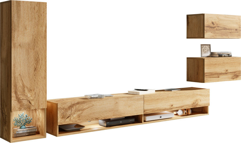 Moderne Wohnwand AMY in Wotaneiche – Stilvoll & Funktional mit LED-Beleuchtung