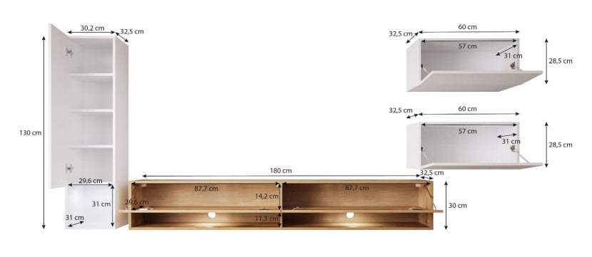 📌 Hängeschränke (2 Stk.): 60 x 28,5 x 32,5 cm