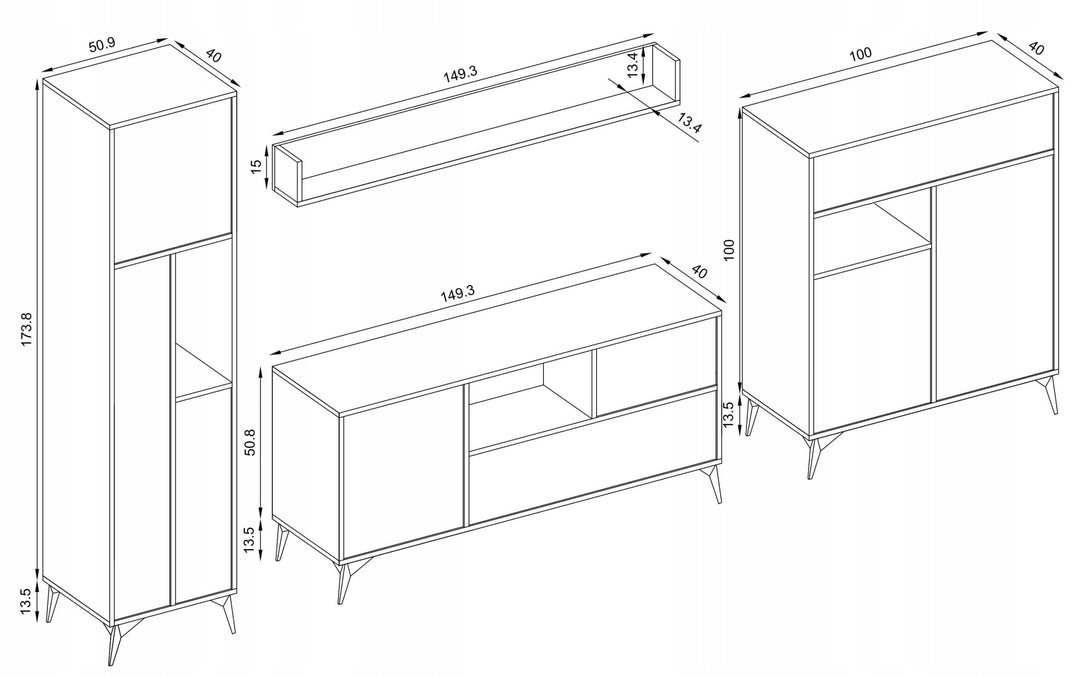 Das Set Venedig besteht aus vier stilvollen Möbelstücken, die Ihrem Wohnzimmer eine moderne und funktionale Note verleihen: